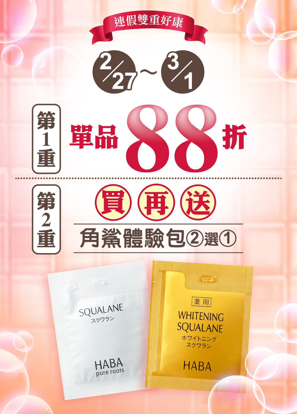 ※入會禮為「HABA角鯊精純液體驗包1mL」1包。