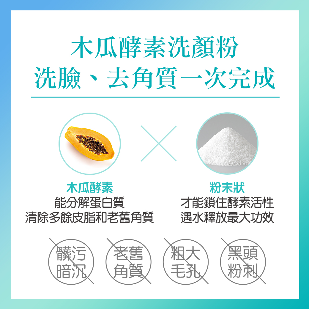 原價$1,560 獨享價$780 等於一瓶$390唷! ※每人限購1組 ![]() \木瓜酵素潔顏粉,洗顏、去角質一次完成!/ 酵素泡泡的超強清潔力,能清除毛孔髒污、瓦解粉刺,洗出白煮蛋般的滑嫩細緻肌。溫和的弱酸性胺基酸配方,搭配獨家角鯊精華,洗後水嫩不乾澀,膚觸滑嫩好咕溜♥