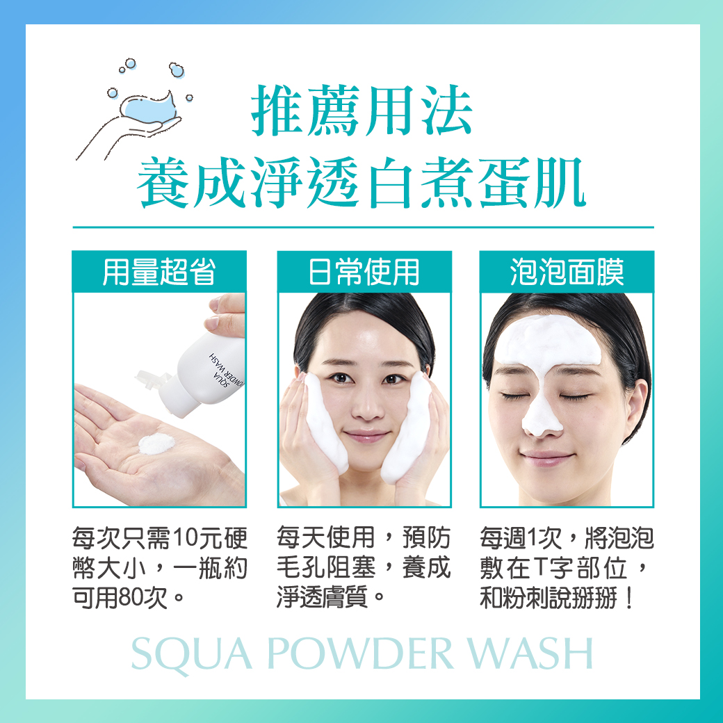 不僅能輕鬆搓出綿密泡泡,迅速帶走毛孔髒污,更具有「一沖即淨」特性,讓肌膚瞬淨好舒適。 ![]() Point 1:以潔顏粉加少量水,以雙手搓出泡泡。 Point 2:不直接用手,而是用泡泡來清潔臉龐。你會發現洗後肌膚變得更柔嫩透白唷! DIY泡泡麵膜,連頑固黑頭也一乾二淨 討人厭的黑頭,就交給「酵素泡泡麵膜」吧!搓出泡泡後,敷在T字部位,約1分鐘後沖掉就OK!每週一~二次,輕鬆養成白煮蛋般的零毛孔美肌。 ![]() 胺基酸系潔顏×保養成分,每天使用也OK 胺基酸系潔顏,溫和潔淨零負擔。獨家角鯊及植物美肌成分,洗後清爽不緊繃,留下滿滿水嫩柔滑。 ![]() ♥角鯊精華:滋潤鎖水 ♥橙果精華:舒緩安撫 ♥黃岑根精華:舒緩、提升保水 相關推薦商品