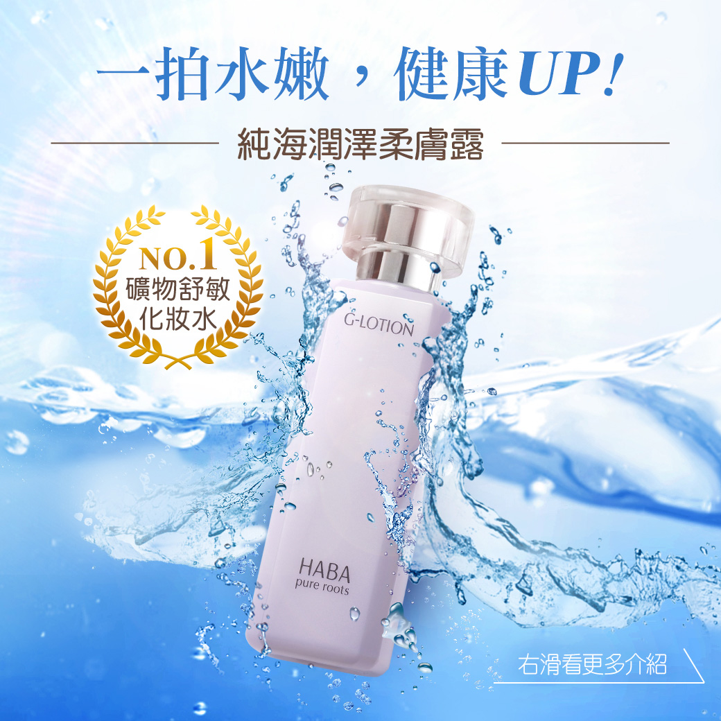 輕透水漾質地,一拍上就感受到前所未有的清新舒適,任何季節、所有膚質都適用。HABA推薦化妝水疊擦5次法,不用改變保養程序,只要將拍化妝水的次數增加,你一定會發現肌膚變得更膨潤、更水亮唷!