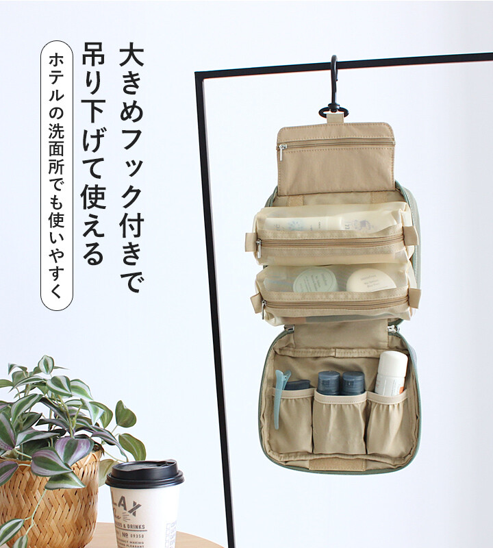 出外旅行最怕化妝台空間不足,或是盥洗用品散亂包包各處,這款僅130g的極輕量收納包,不僅能懸掛,還能變身自立式收納包,讓你在飯店盥洗保養時隨手拿、優雅用♥