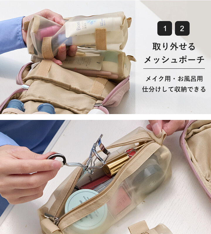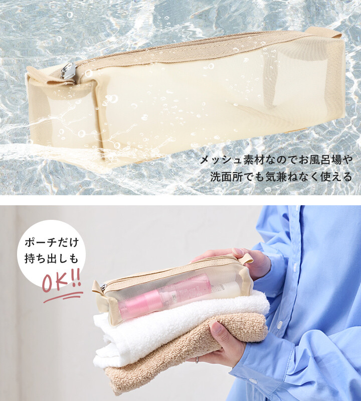 可拆卸網格小包×2:可方便單獨帶進浴室或單獨取出當成化妝包使用。