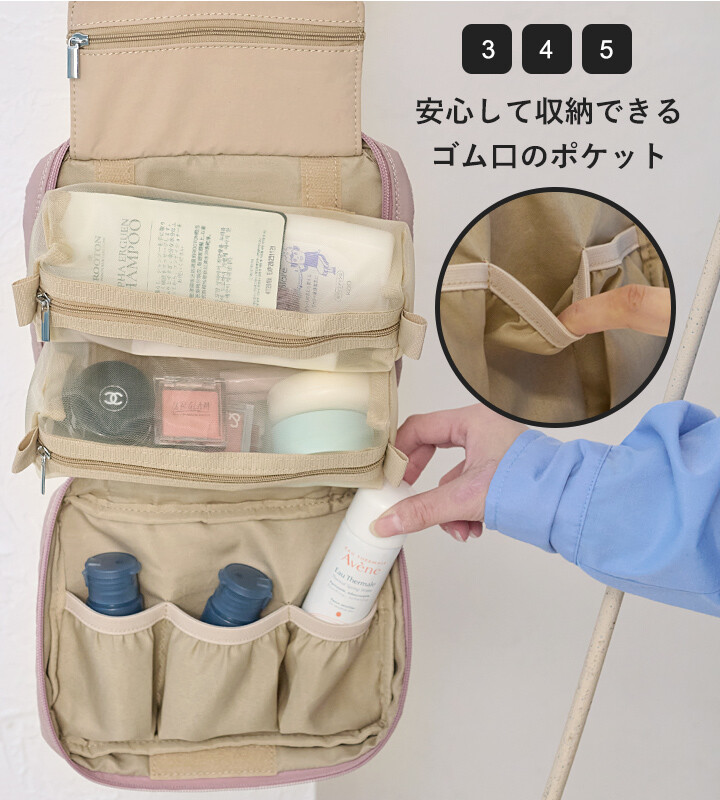 束口彈性口袋 ×3:穩固收納瓶瓶罐罐,不東倒西歪。