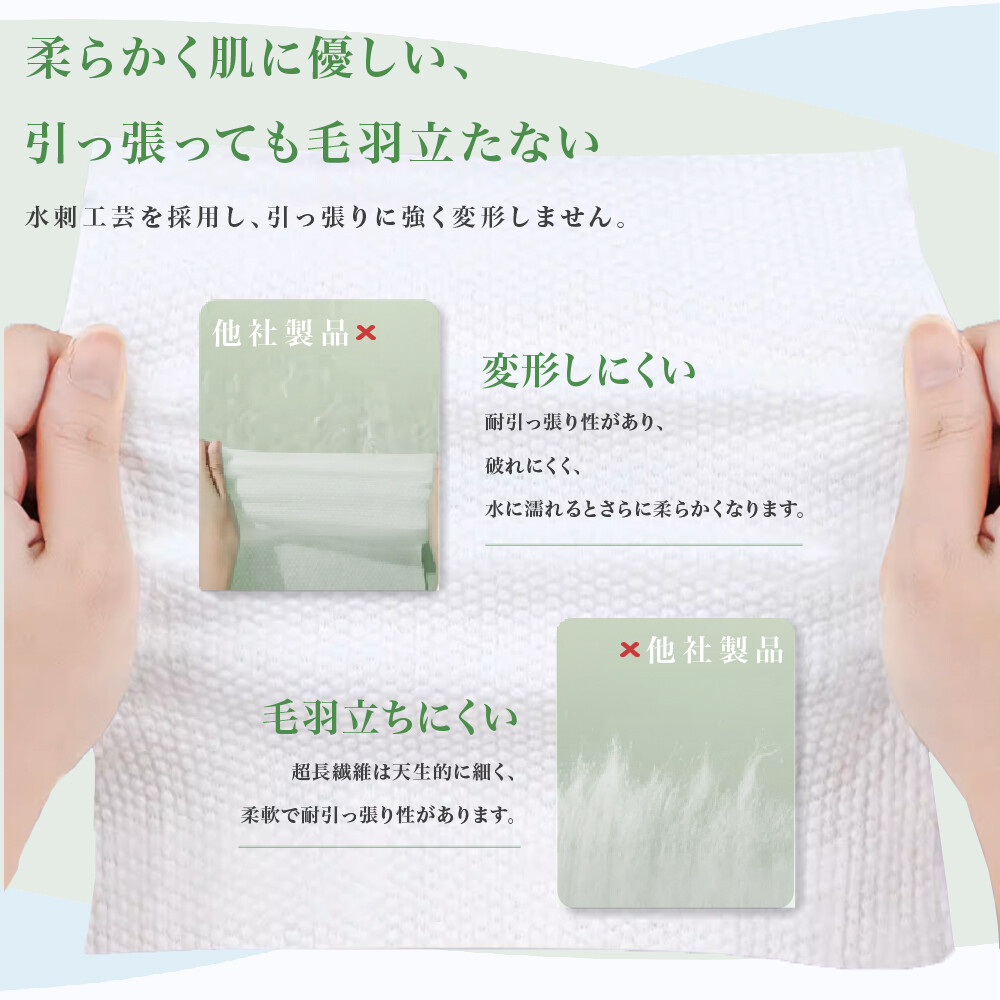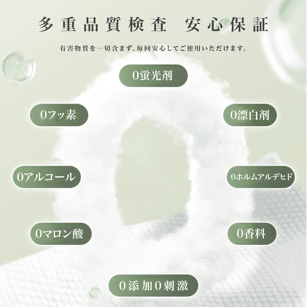 柔軟親膚,不含螢光劑、漂白劑、酒精及化學藥品,敏弱肌也能安心使用。