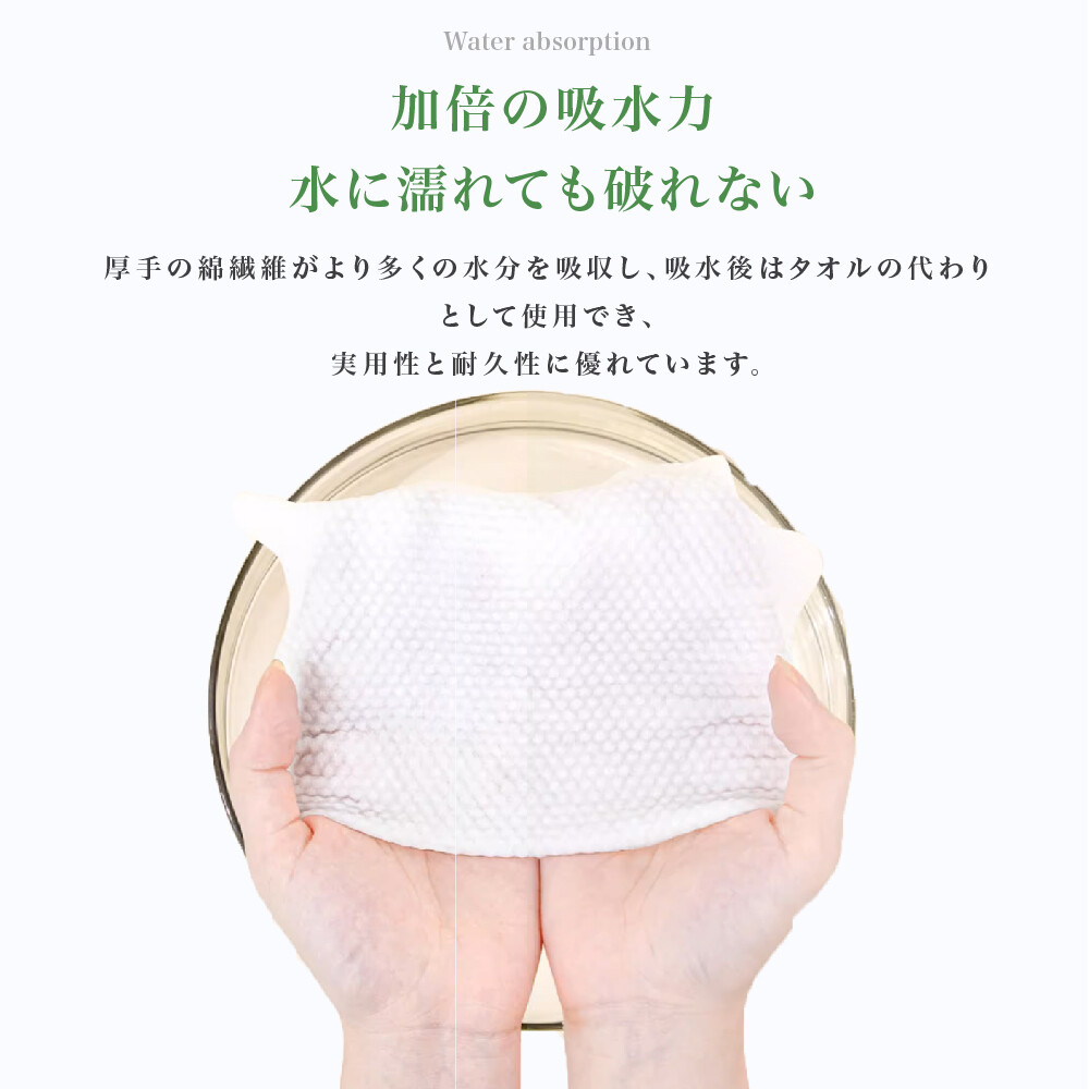 厚實的棉纖維吸水力倍增,且遇水不軟爛、不破裂、不掉屑。