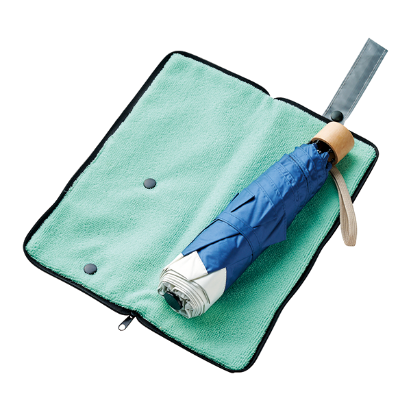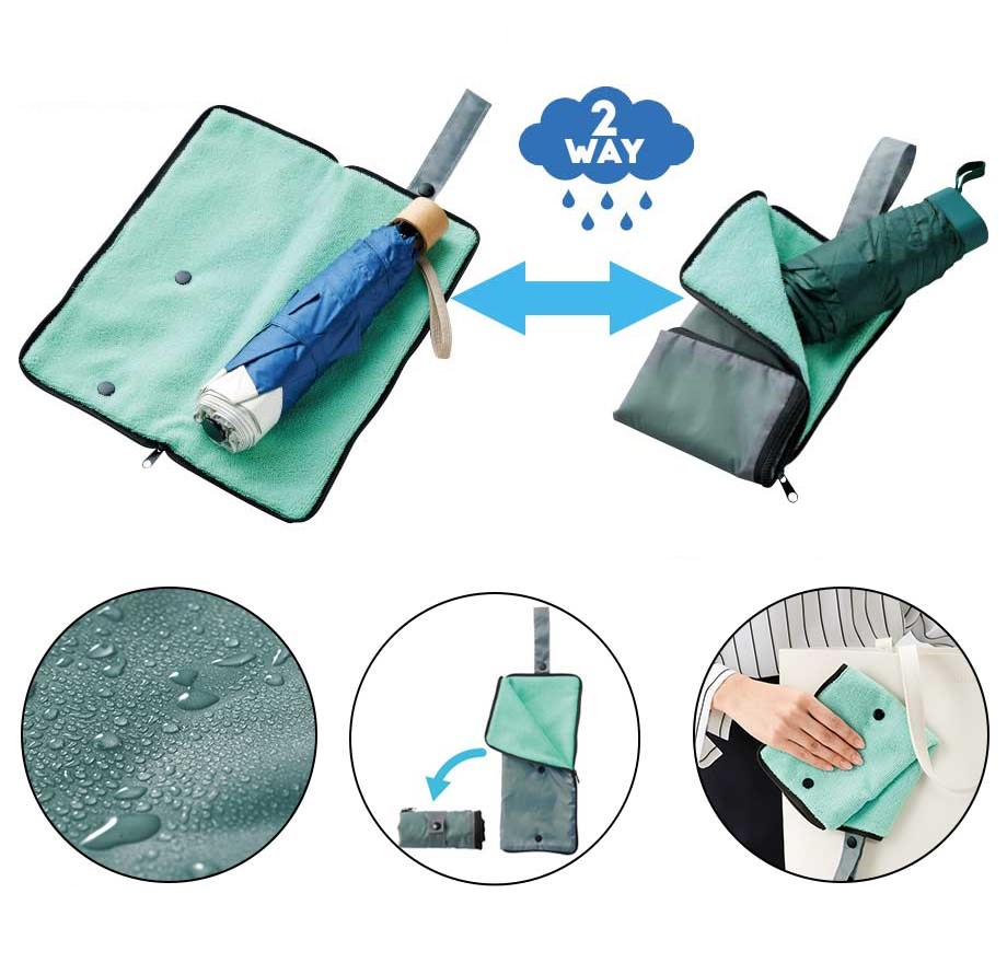 外層布料防潑水處理,雨滴不易滲透;內層採用高效率吸水布,能瞬間抓捕傘面水滴。