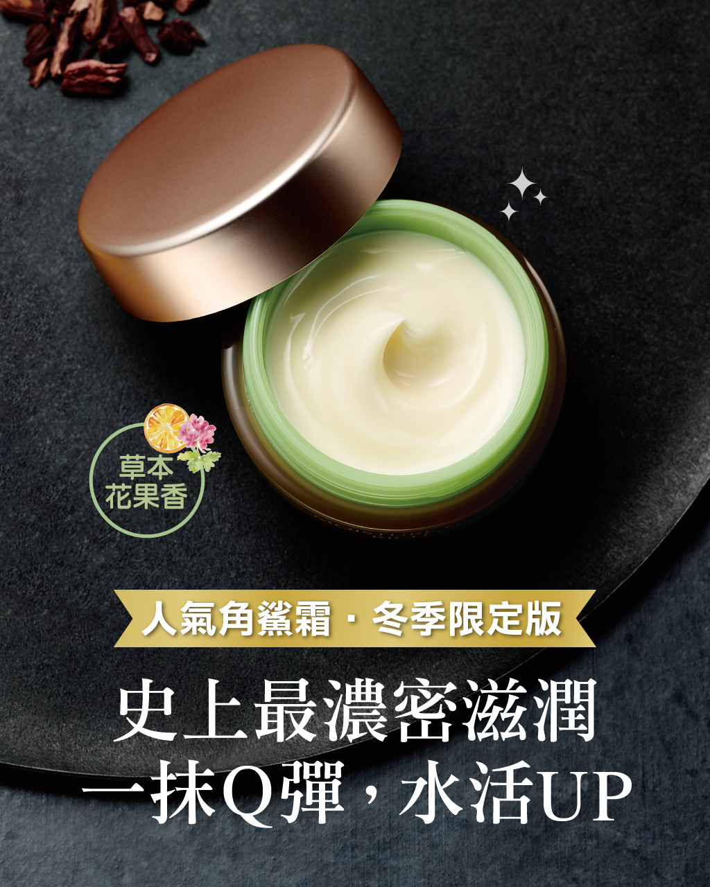 使用方法 成分 ![]() \ 年終回饋買1送1 / 冬季限定特潤角鯊霜 買就送人氣NO.1化妝水 原價$2,260 年終回饋價$1,280 特潤水霜1+1組 買:水活特潤肌能霜30g(原價$1,280) 送:純海潤澤柔膚露180mL ♥水活特潤肌能霜 質地如奶油般豐盈柔滑的角鯊乳霜,一抹彷彿融化般,肌膚立現柔嫩彈潤。5重和漢植萃,搭配14種胺基酸,促進肌膚代謝,從根本強化肌膚健康水活力。 ![]() ![]() ♥純海潤澤柔膚露 以北海道海洋深層水打造,瞬間滲透保濕,給肌膚超滿足水嫩。3種礦物精華,舒緩安撫敏弱肌,迅速調理至健康膚況。 ![]() 相關推薦商品